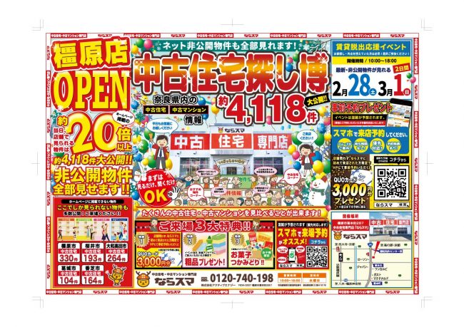 深緑色のエリアは奈良店、薄緑色のエリアは橿原店、みどりのエリアは生駒店の対応エリアです。