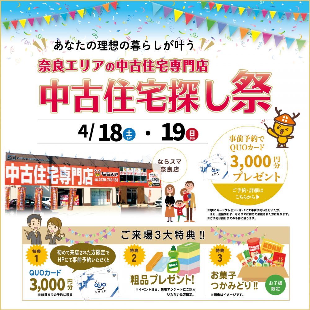 トップページ > イベント情報 > 【奈良店】中古住宅探し博!4/18(土)・4/19(日)開催♪