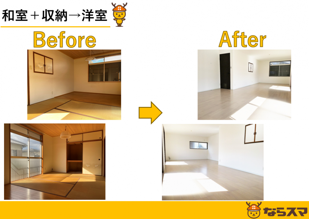 そこでY様は和室、押し入れ、収納スペースを取り払い、15,5帖の洋室にリフォームされました。