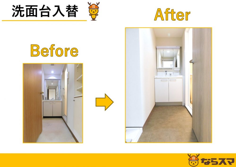 洗面室は洗面化粧台の入替え、床のクッションフロアの張替、