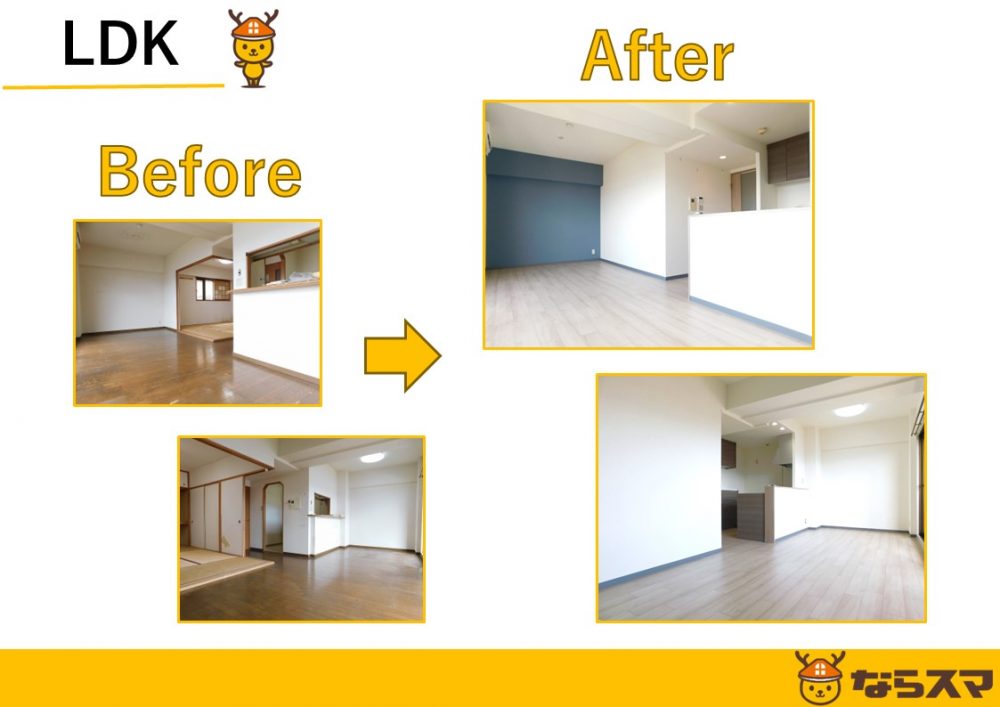 LDKはクロスの貼替、フローリングの張替、建具交換工事を行いました!