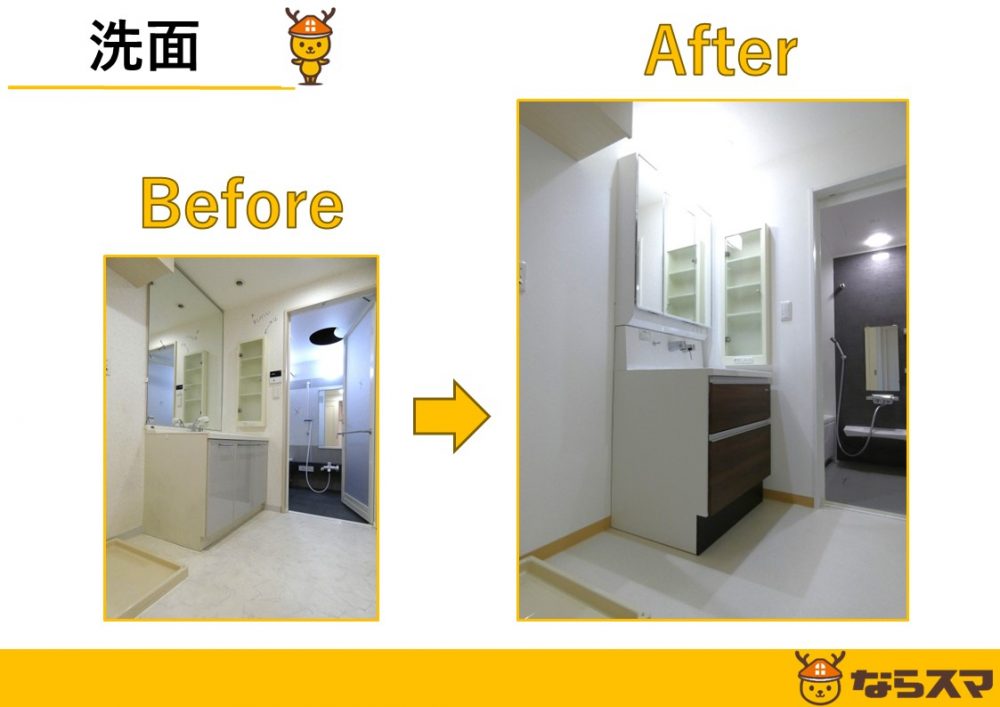 洗面室はクロスの貼替え、床のクッションフロア貼替え