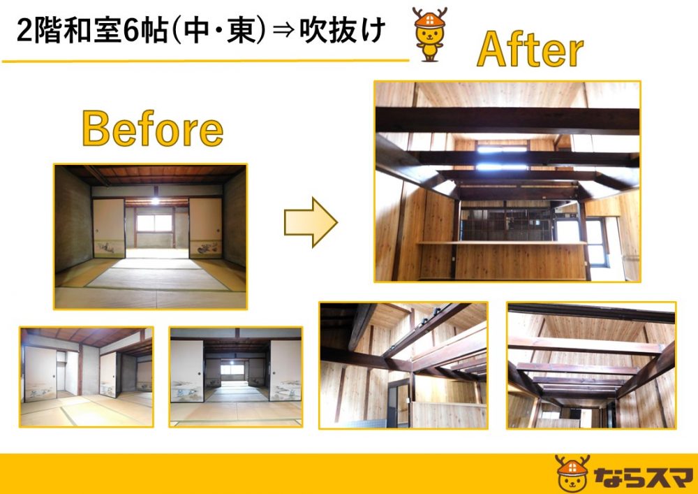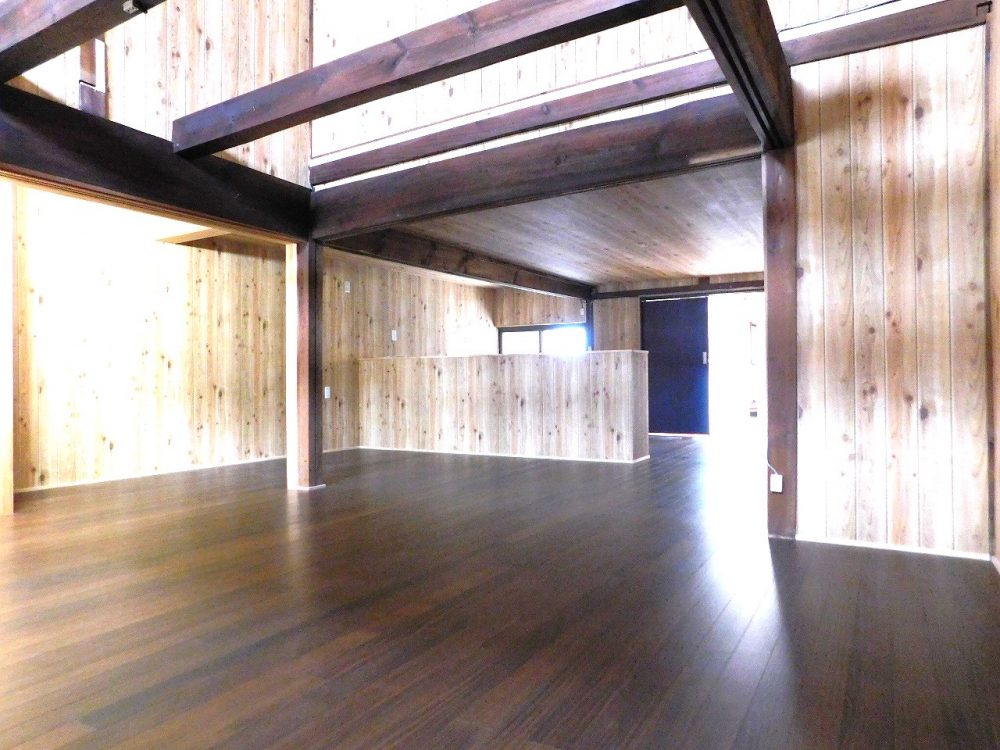 居室を解体し、梁を残した状態で吹抜けに変更したりと