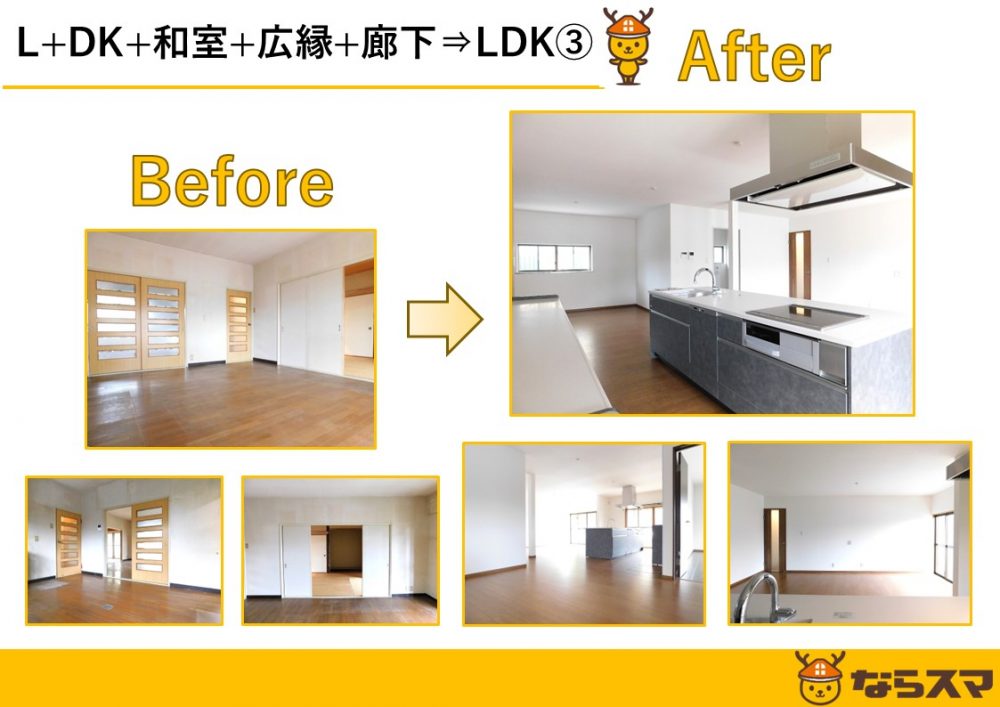 ・和室6帖・広縁・廊下の間仕切り壁を解体し
