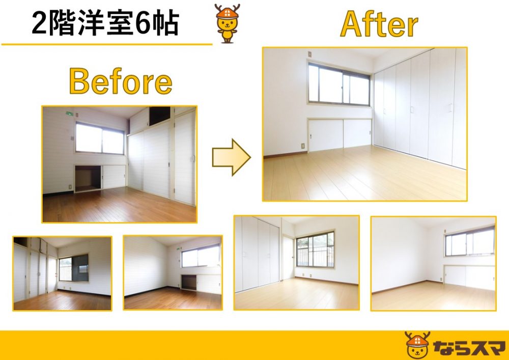 2階洋室6帖はクロスの貼替と床のフローリング上張り工事