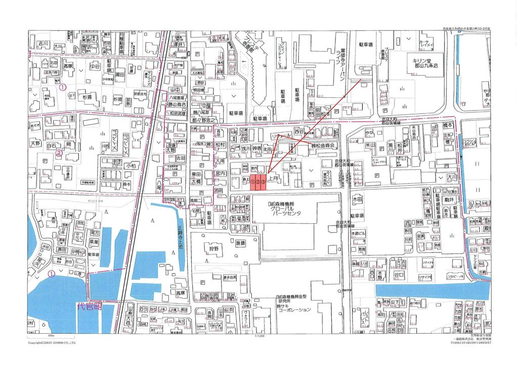 ※地図上の「対象地」は「〒639-1160 奈良県大和郡山市北郡山町」の場所を指しています。実際の場所ではない場合がございます。詳しくはお問い合わせください。