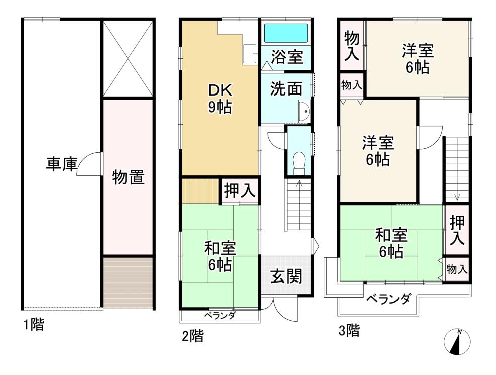 | 間取り | 4DK | 間取り内訳 | 和6畳 DK9畳 和6畳 洋6畳 |