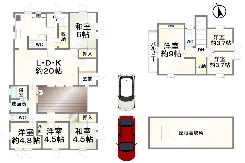 | 間取り | 7LDK | 間取り内訳 | 1FLDK20畳×1室 1F和6畳×1室 1F和4.5畳×1室 1F洋4.5畳×1室 1F洋4.8畳×1室 |