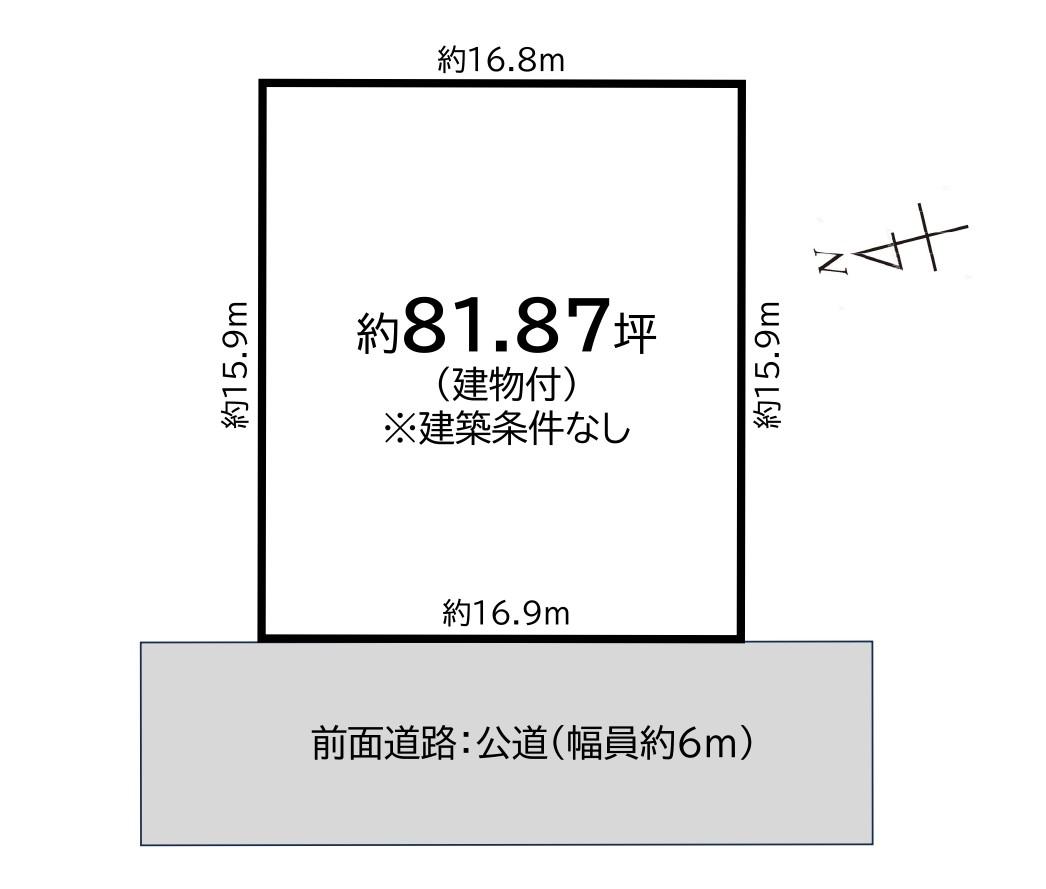 | 接道状況 | 西6m 公道 接面16.9m 一方道路 | ||