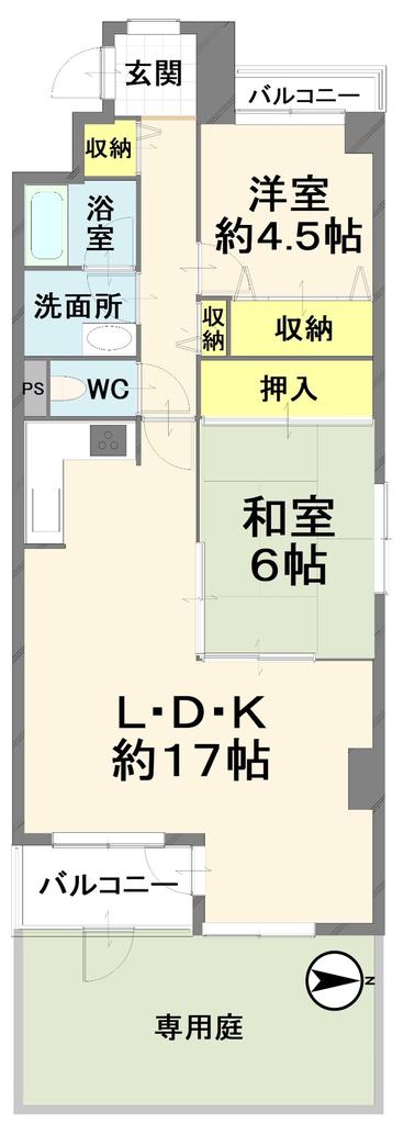 | 間取り | 2LDK | 間取り内訳 | LDK17畳×1室 和6畳×1室 洋4.5畳×1室 |