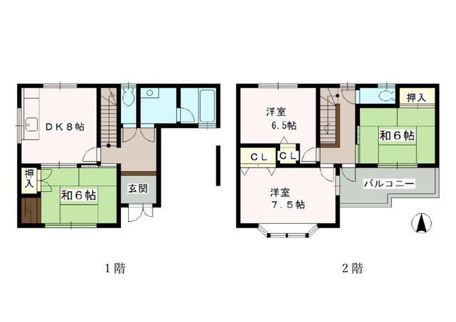 | 間取り | 4DK | 間取り内訳 | 和6畳×2室 洋7.5畳×1室 洋6.5畳×1室 DK8畳×1室 |
