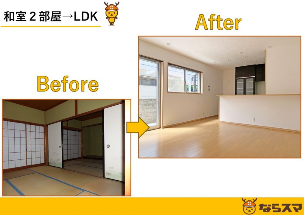 リフォームにすることで一から建てるよりもコストを抑えて、自分たちのお好きなように間取り変更をすることもできますので「中古住宅+リフォーム」に少しでも興味を持ったかたはならスマへお越しくださいね。